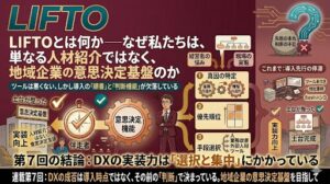 必要なのは「意思決定支援」である ここまでに、中小企業DXの失敗がどこで生まれるのか、なぜ生まれるのかを、構造的に見てきた。 導入しているのに現場は変わらず、結局以前の状態に戻る。何を解決すべきかを精査しないまま、提案ツ […]